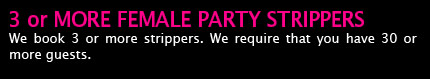 PARTY CONDUCT OF HOSTESS AND GUESTS- DISCLAIMER: All customers who book with us are to maintain a safe environment at all times for our dancers. At any time that the dancers feel harrased or threatened. They have the right to leave without any money for fees returned.